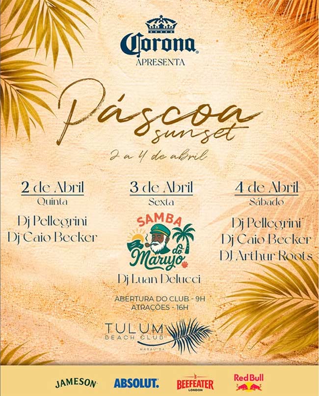 A Páscoa no Tulum promete ser simplesmente inesquecível. Dias de sol, música boa e uma atmosfera que convida a desacelerar e celebrar o momento. Sunset vibes, atrações musicais especiais e aquela energia leve que transforma tudo ao redor. Uma experiência para sentir, viver e guardar.