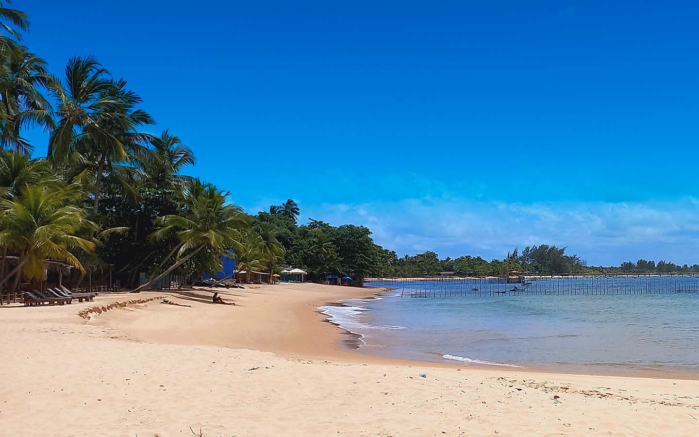 Going south, there are more deserted beaches with plantations of coconuts and fine white sand. At Arandi beach, the low tide forms natural swimming pools between the reefs. At Algodões beach, there are some houses and lodges. Those beaches are the closest to the village of Maraú.